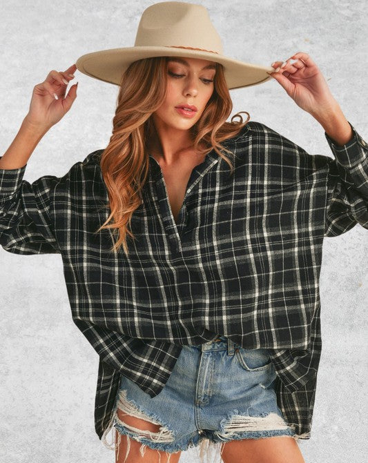 Lucianna High-Low Plaid Top