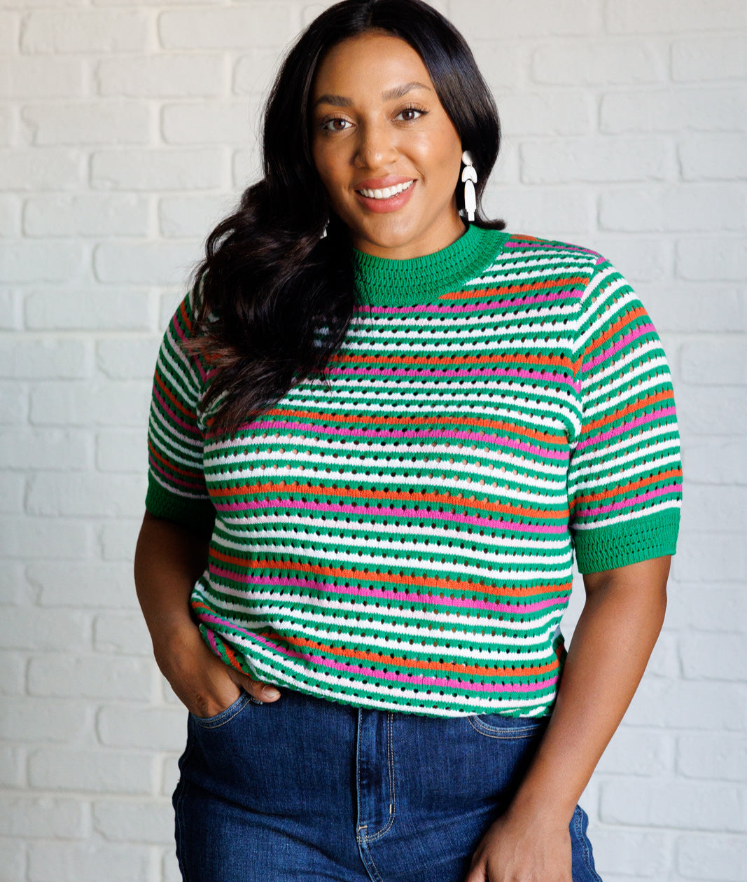 Get cozy with our Situationship Knit Striped Top! This top features high-stretch sweater knit for a comfortable fit, a round neckline, and trendy half sleeves. Perfect for any casual occasion, this top is a must-have for any situation. (And maybe a potential relationship?)